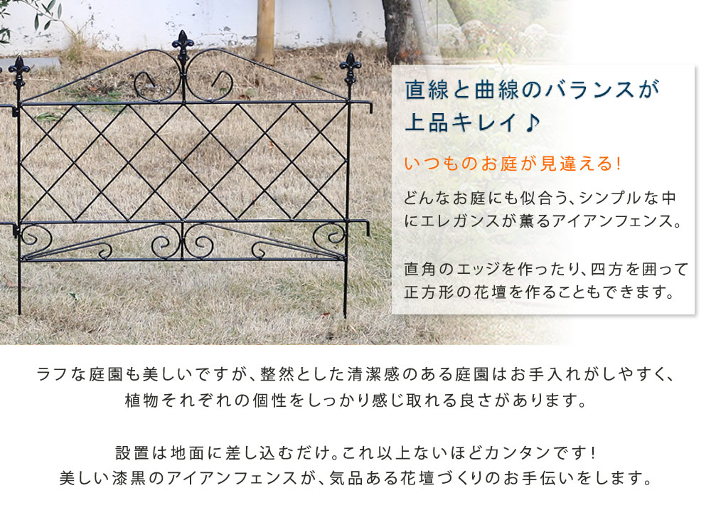 どんなお庭にも似合う、シンプルな中にエレガンスが薫るアイアンフェンス。