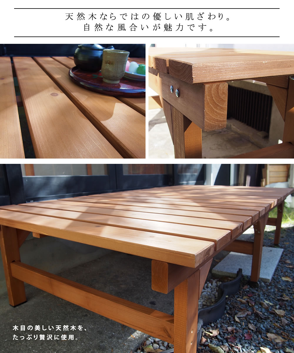 | ■サイズ(約) | デッキ縁台(幅174):幅 1740×奥行 550×高さ 400mm デッキ縁台(幅87):幅 870×奥行 550×高さ 400mm ステップ:幅 650×奥行 395×高さ 160mm |