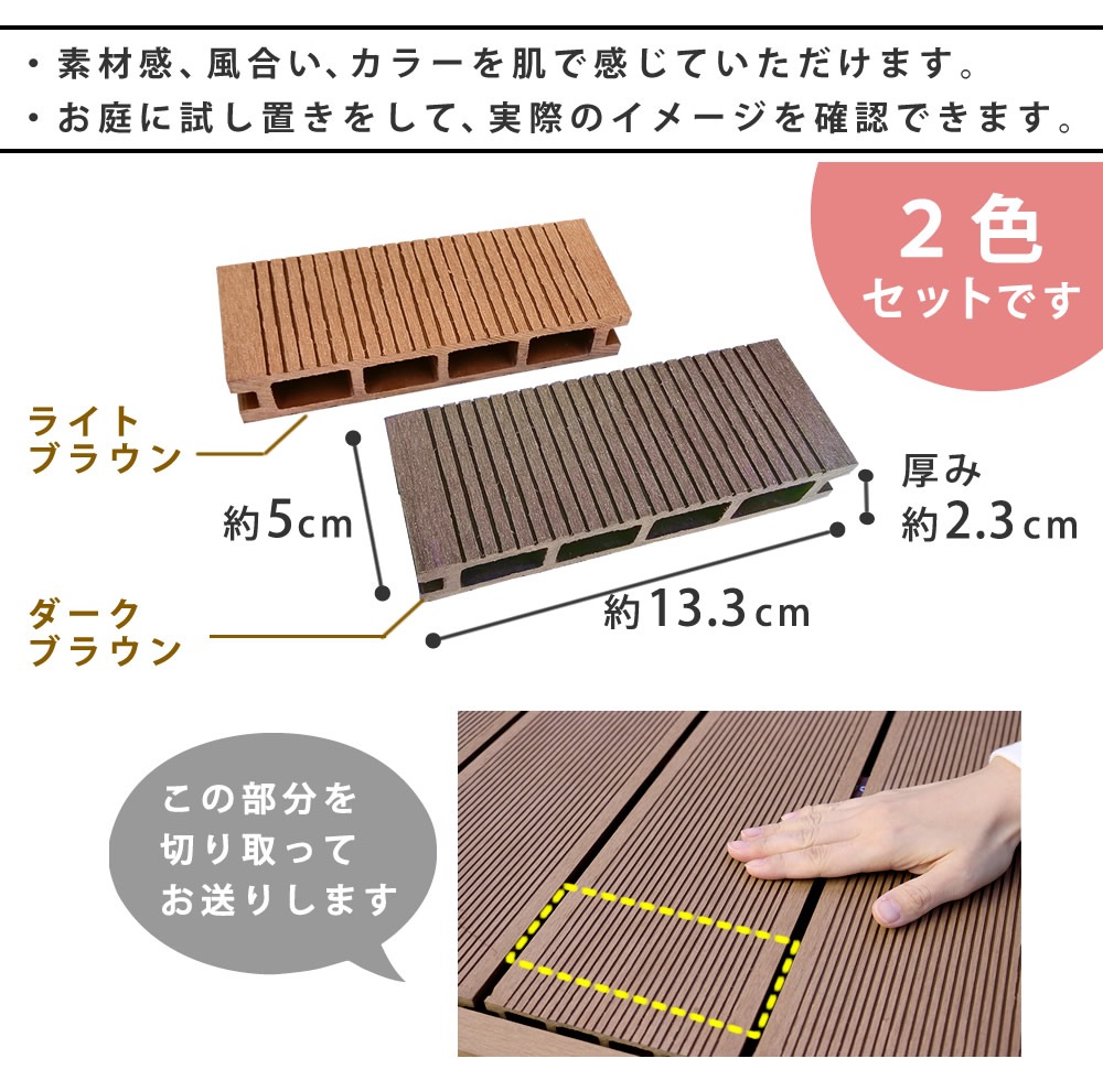 | ■商品名 | 人工木ウッドデッキecofeel(エコフィール)カットサンプル2色セット |