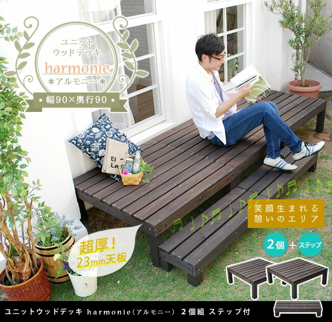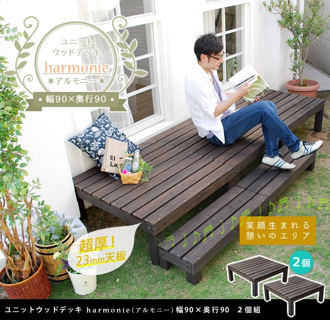 【ユニットウッドデッキ harmonie(アルモニー)90×90 2個組 ステップ付】