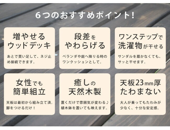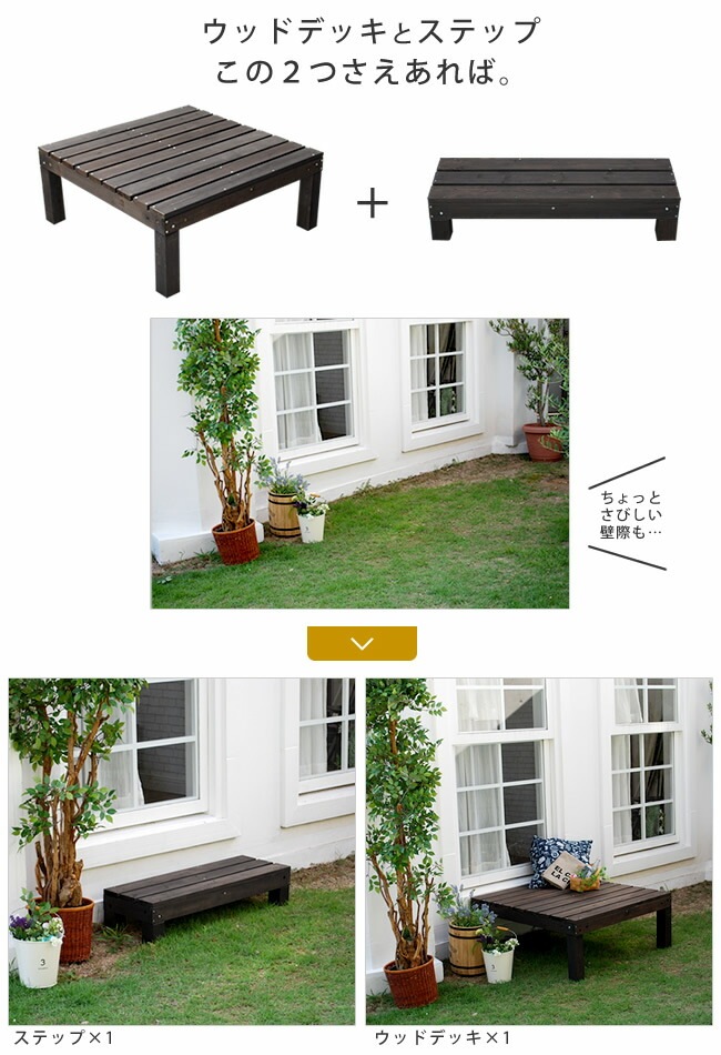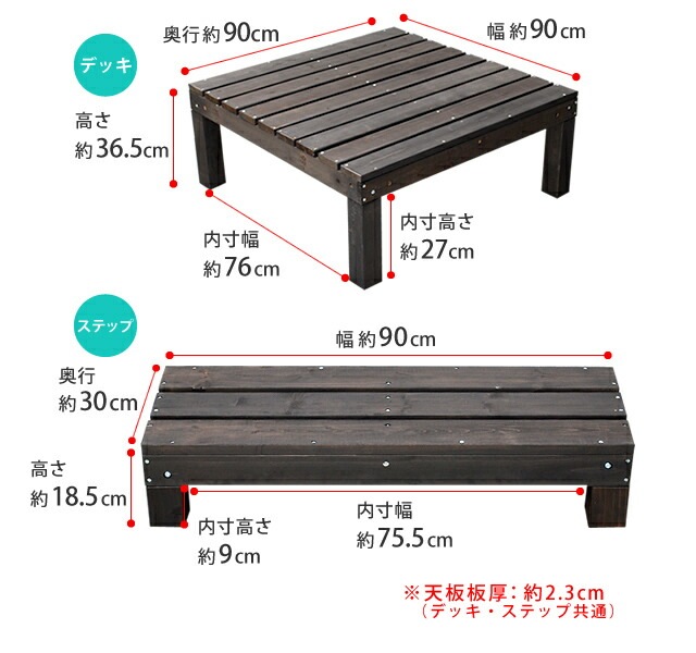 | ■サイズ | ウッドデッキ…幅 約900×奥行 約900×高さ 約365mm ステップ…幅 約900×奥行 約300×高さ 約185mm |
