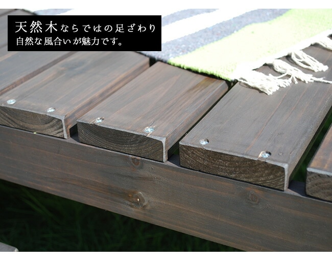 | ■備考 | ※汚れたら水拭きしていただけます。 ※天然木のため、色褪せやひび割れが発生する場合があります。ホームセンターで販売されている木材の保護塗料で塗り直しいただくなど、定期的なメンテナンスをおすすめいたします。 ※ステイン塗料につきましては、衣料品等に色移りする場合がございます。乾拭きなどしてご利用ください。 |