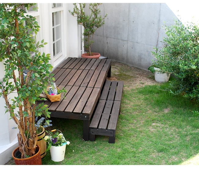 縁台として、ウッドデッキとして、また飾り棚としてもお楽しみいただける、