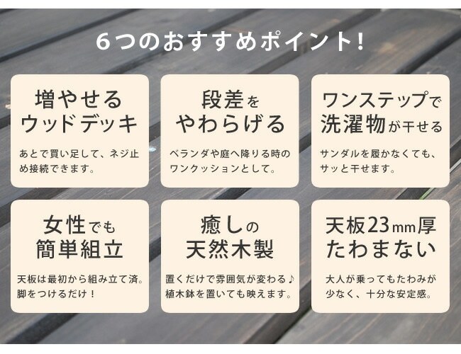 | ■サイズ | ウッドデッキ…幅約900×奥行約900×高さ約365mm ステップ…幅約900×奥行約300×高さ約185mm |