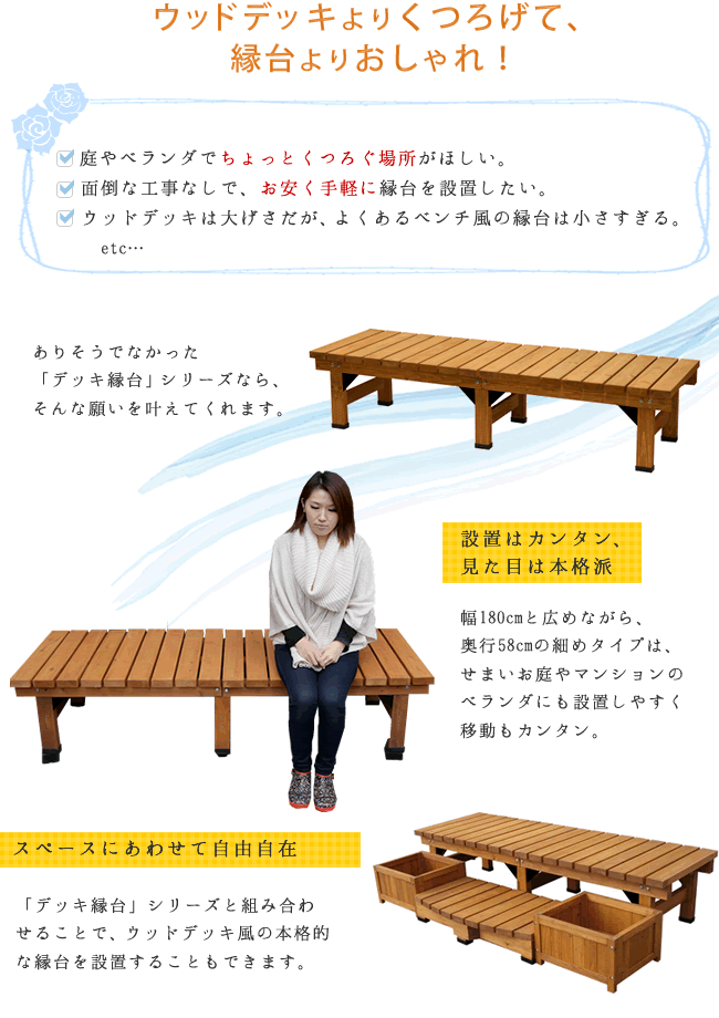 ありそうでなかった「デッキ縁台」シリーズなら、そんな願いを叶えてくれます