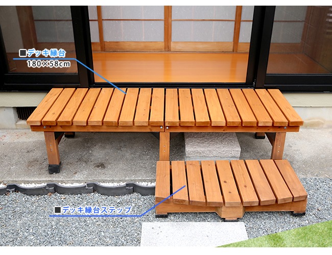 ウッドデッキ風の本格的な縁台を設置することもできます
