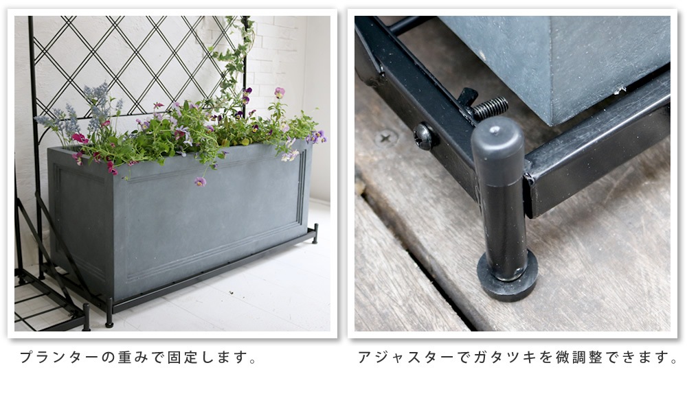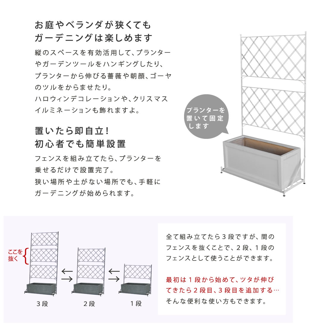 フェンスを組み立てたら、プランターを乗せるだけで設置完了。