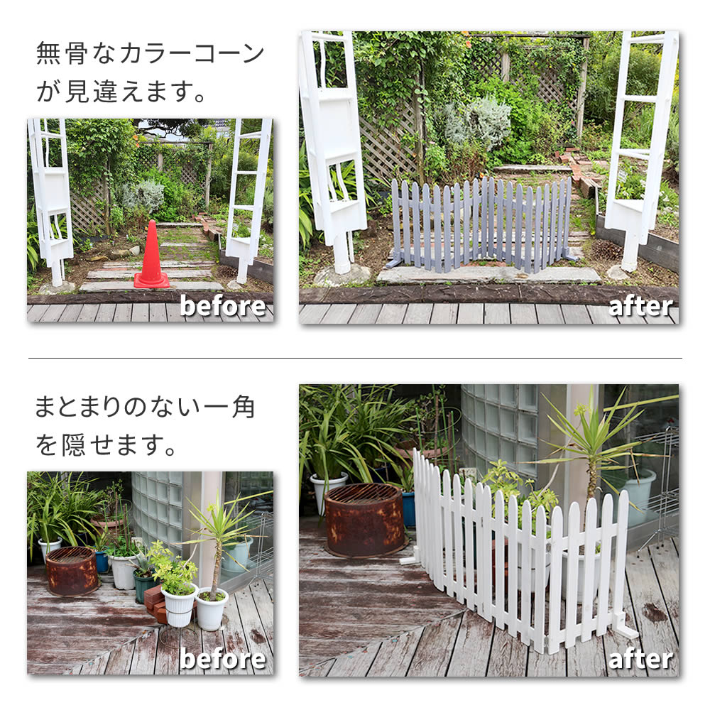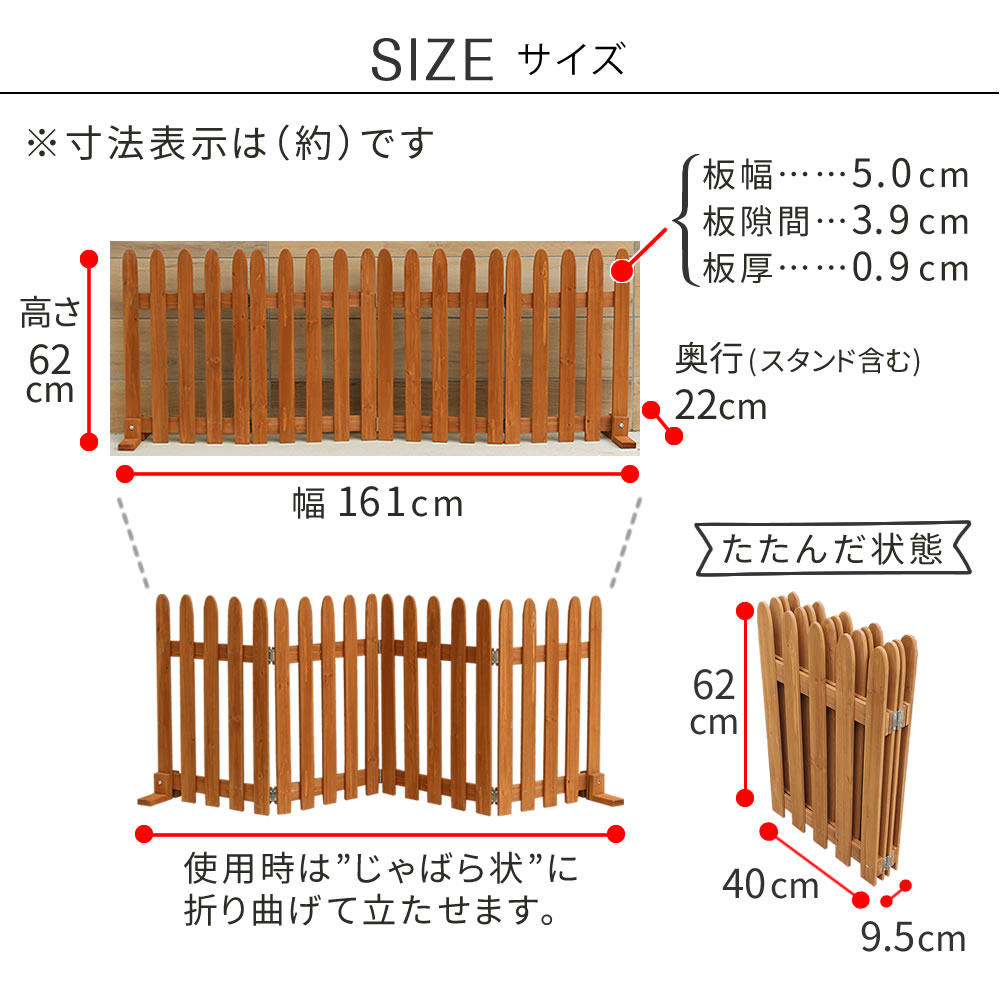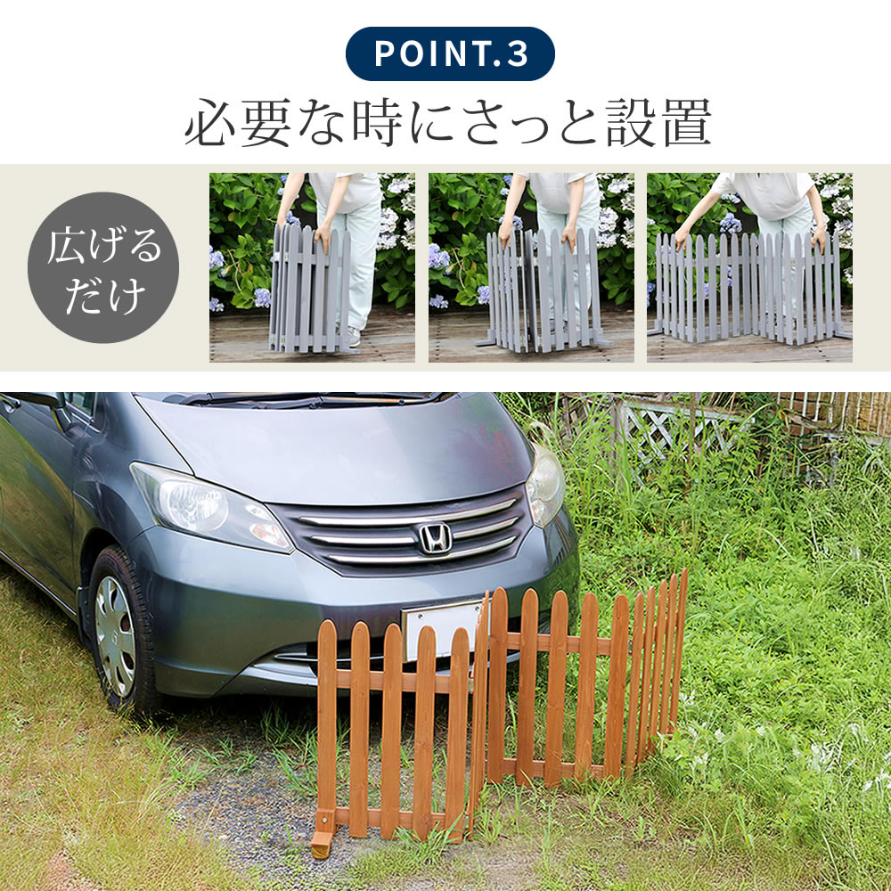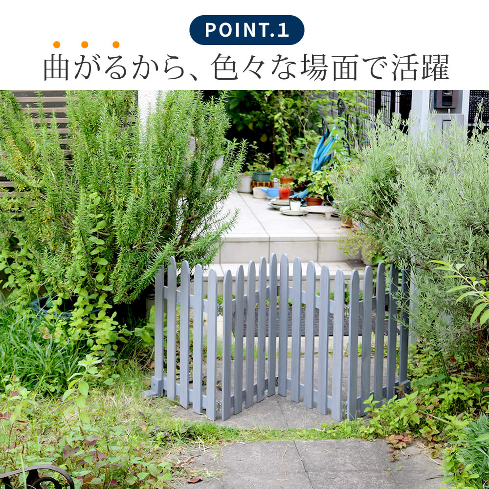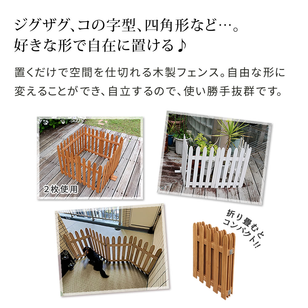 置くだけで空間を仕切れる木製フェンス。自由な形に変えることができ、自立するので、使い勝手抜群です。