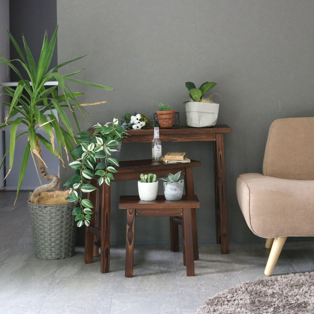 焼杉スツール風スタンド 3点セット YT-406080Y